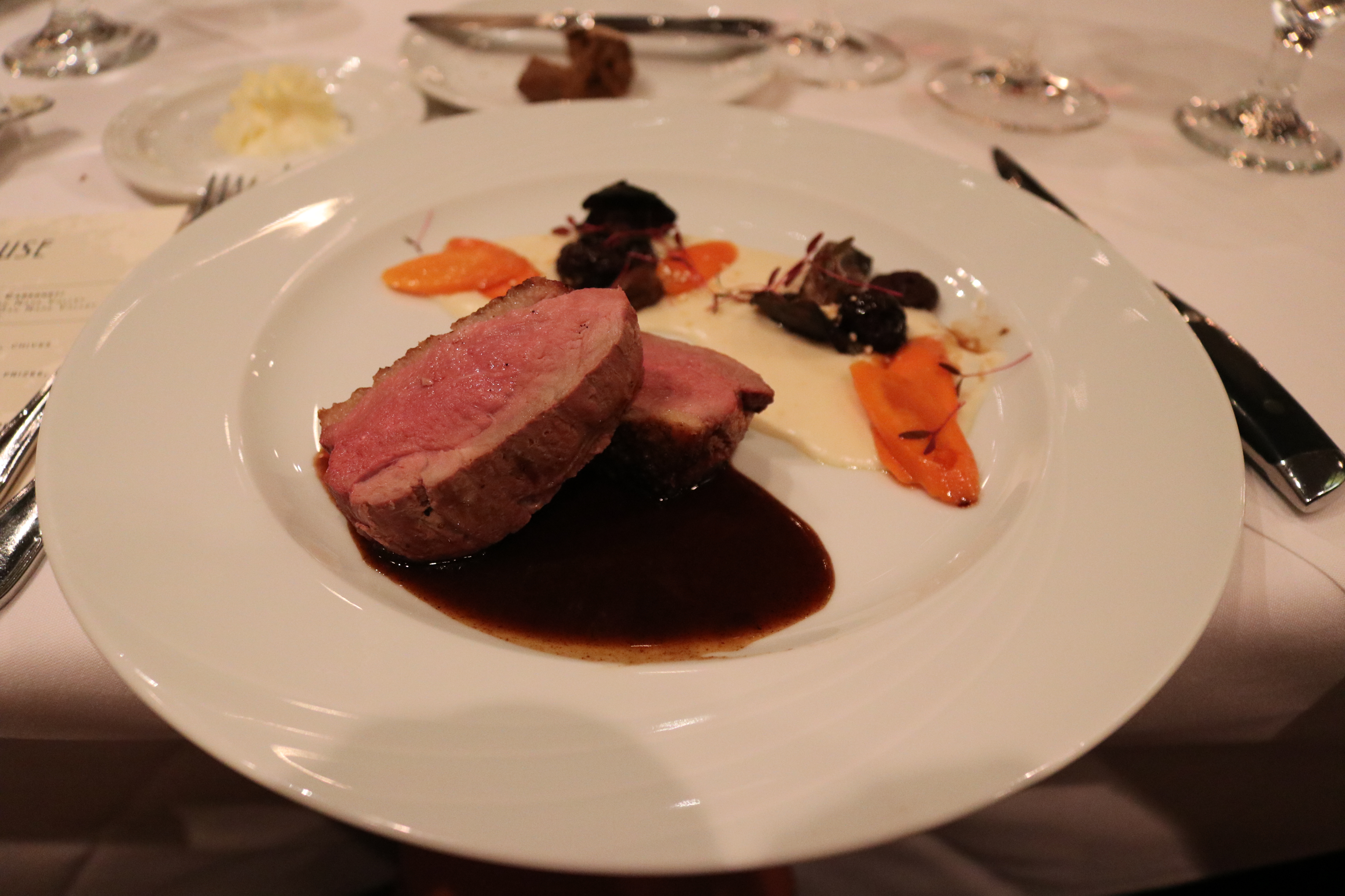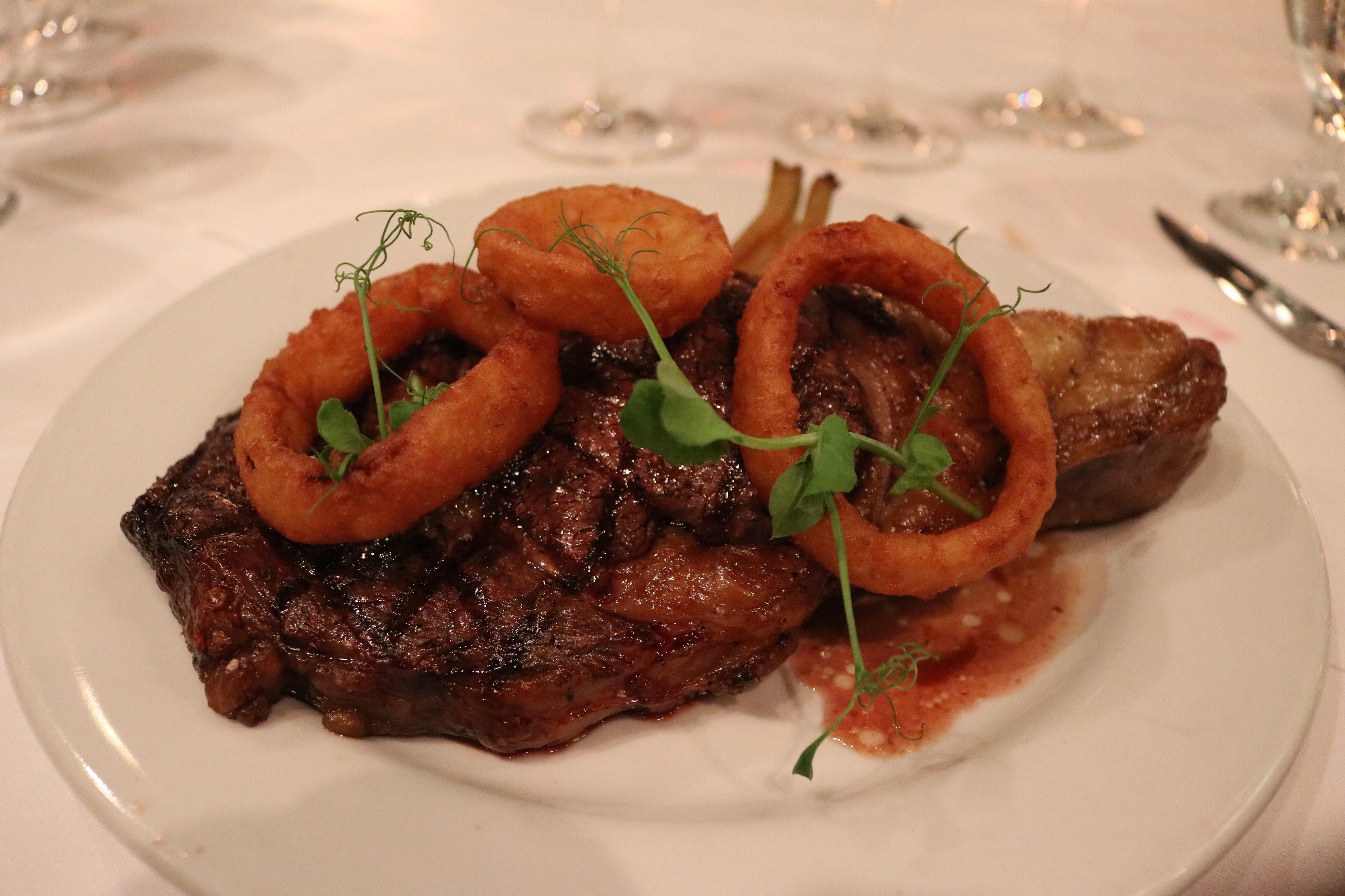 FOURTH COURSE: MISHIMA RESERVE AMERICAN WAGYU RIBEYE ROGUE RIVER BLUE CHEESE TWICE-BAKED POTATO, OVEN-BRAISED FENNEL, MARCHAND DE VIN I was not expecting such a mammoth portion of steak for the final savory course, but leave it to the Firehouse kitchen staff to “tout donner” or in English, “give it all”! The steak was fatty and rich and the potato was wickedly capped in blue cheese. The fennel (my favorite element on the dish) had soaked up the red wine reduction so much it was like eating a fabulously candied licorice onion!