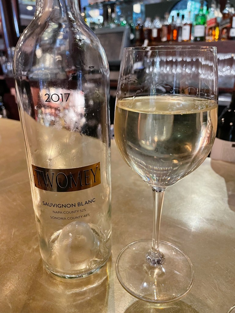 Upon arrival, patrons were led to a private dining area with a giant fireplace and long, majestic dining table facing the courtyard. We were given a glass of 2017 Twomey Sauvignon Blanc to kick off the evening, as well as a passed crab cake appetizer.