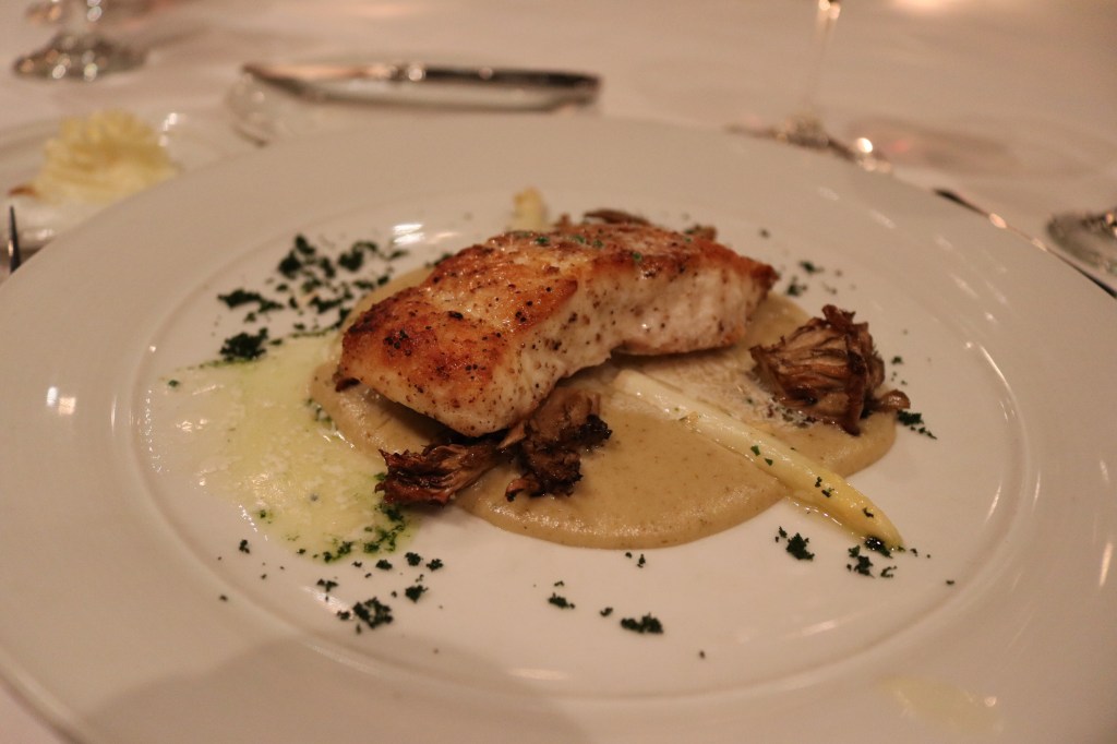 THIRD COURSE: FILET OF WHITE STURGEON LOCAL SUNCHOKE PURÉE, WHITE DELTA ASPARAGUS, FORAGED MUSHROOMS, HERB POWDER I do love a good sunchoke preparation, because I don’t see it on menus that often. The puree, the asparagus and the mushrooms painted an earthy backdrop for the generous portion of sturgeon mounted on top. The fish was seared and cooked perfectly and again, the textures and flavors of the third course were impeccable.