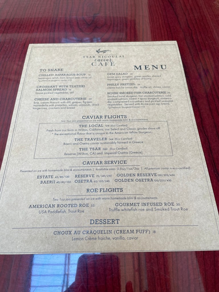 Last week, I attended an industry wine tasting in San Francisco, and I was looking into where I might explore in the City after the tasting was over. It didn’t take long for me to decide on the Tsar Nicoulai Caviar Café as my destination, as I have been enjoying caviar as often as my budget allows for the past few years, and trying to learn as much as possible about its production.