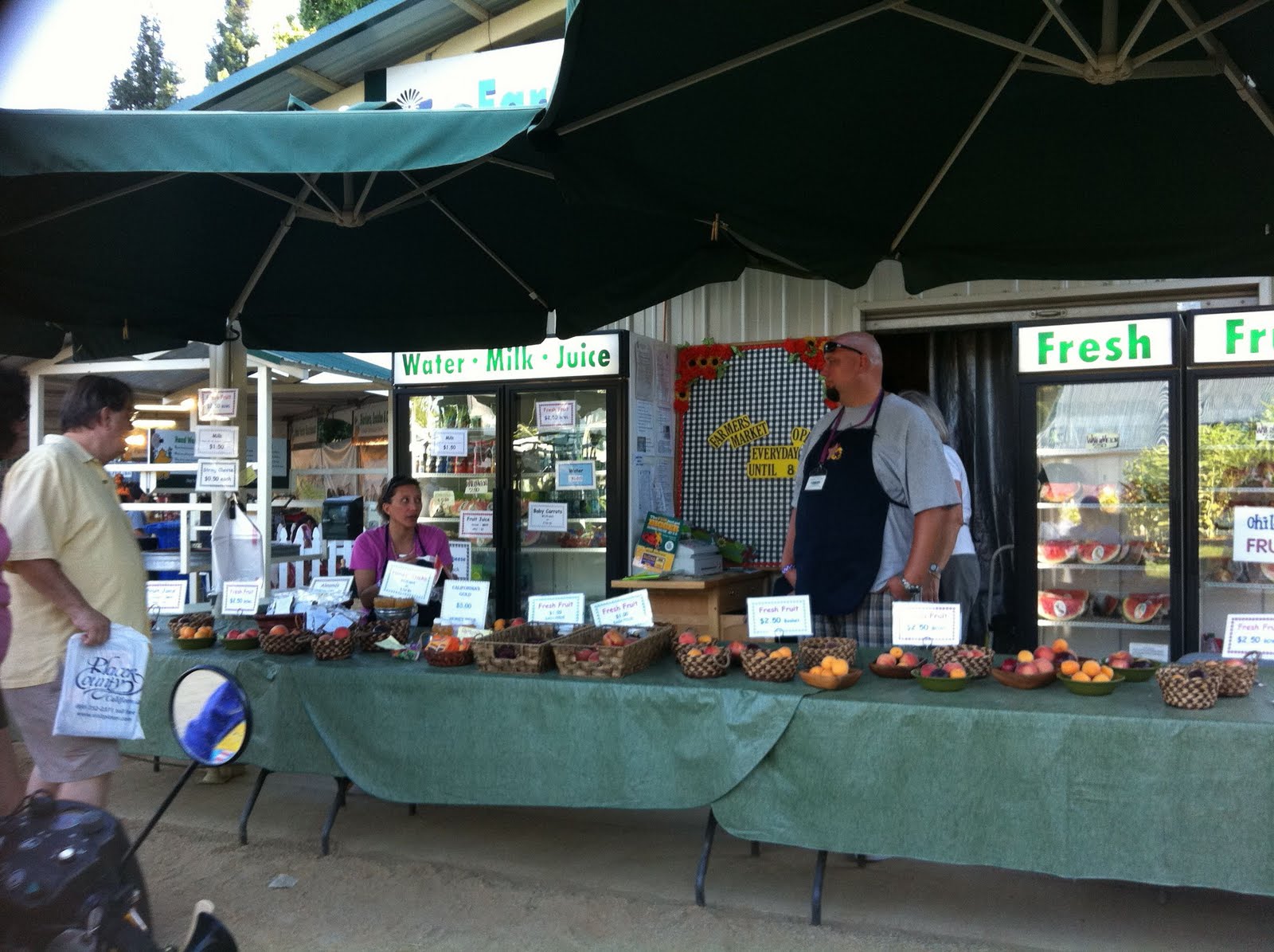 If you head to the back of the fair behind the wine garden and the exhibit halls, there’s an awesome agriculture exhibit with a lot of hands on garden stuff, plants, fruits, vegetables, and guess what?!? A produce stand where you can buy… omigosh: healthy food! Check it out.