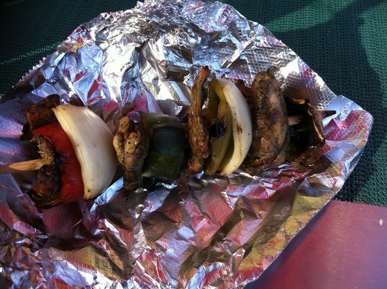 Check out this chicken and vegetable kabob I got from Jeanne’s Artichoke booth. She is located across from the wine garden area over by the bungee jump. The kabob is just chicken and vegetables and probably about 200 calories. Of wonderful protein and complex carbs!! All delicious fuel for your body. 🙂