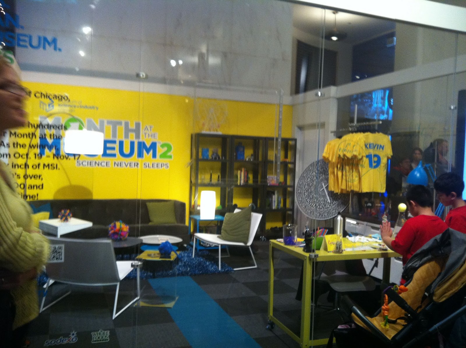 During my visit, there was an exhibit called Month at the Museum. Kevin Byrne, a digital marketing analyst from Chicago lived inside MSI for 30 days during October & November. He was allowed to roam the museum at will, but this is the space where he hung out most of the time.