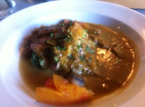 This dish reminded me of meatloaf and mashed potatoes. I just loved the red pepper jus.