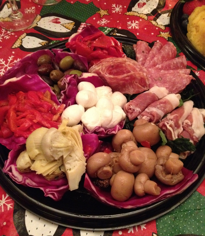 The last item on the spread was this impressive antipasto platter featuring nitrate/nitrite-free prosciutto, salami, fresh mozzarella, marinated olives, marinated artichokes, roasted red pepper, marinated mushrooms and roasted tomatoes.