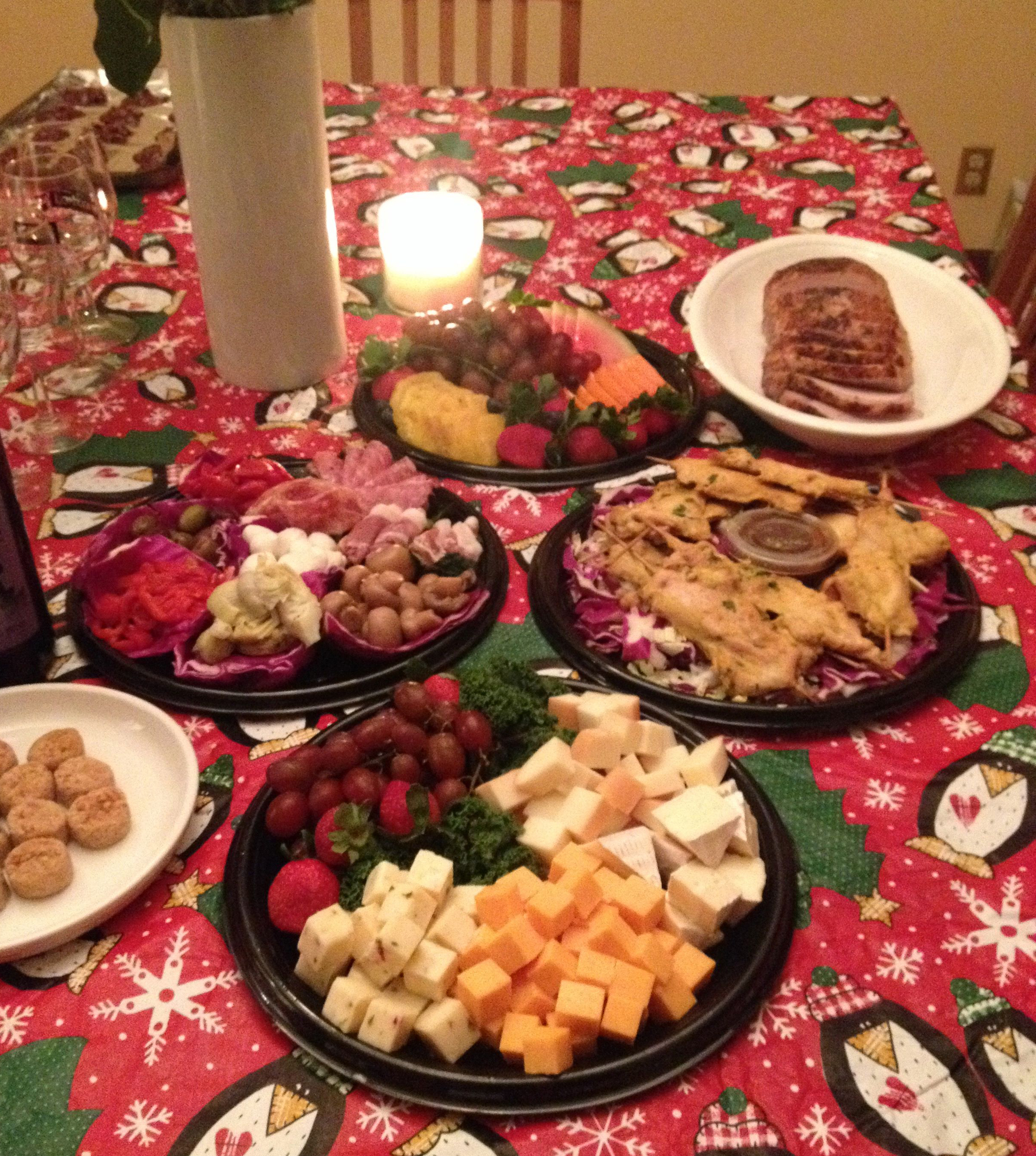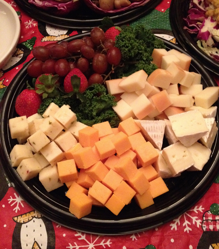 Because the nickname of my holiday gathering was “the wine party disguised as a cookie exchange” I ordered a fruit tray AND a cheese tray, because nothing goes with wine more than fruit and cheese! Especially cheese π