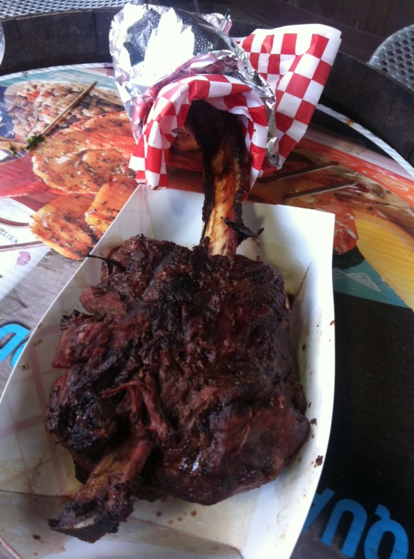 OMG! We conquered the big-*ss Rib Steak!! It was soooo good. We were able to order it right off the grill & medium rare without extra sauce! It costs about $16 and it feeds 2 people. It was perfect for the caveman and the cavegrrl… I am pretty sure we were the happiest couple at the fair sharing that big old hunk of meat! 🙂