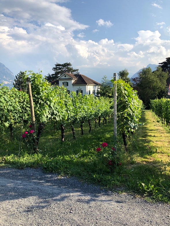 The first day of the trip, we flew into Zurich (Switzerland) from San Francisco on a non-stop flight, rented a car, and drove about 90 minutes to Vaduz. Not only is the Prince’s house in Vaduz, but he also has a winery there, and that evening, we walked from our hotel room to the winery, The Hofkellerei of the Prince of Liechtenstein, to attend an all-you-can-eat grill buffet featuring an all-you-can-drink wine tasting.