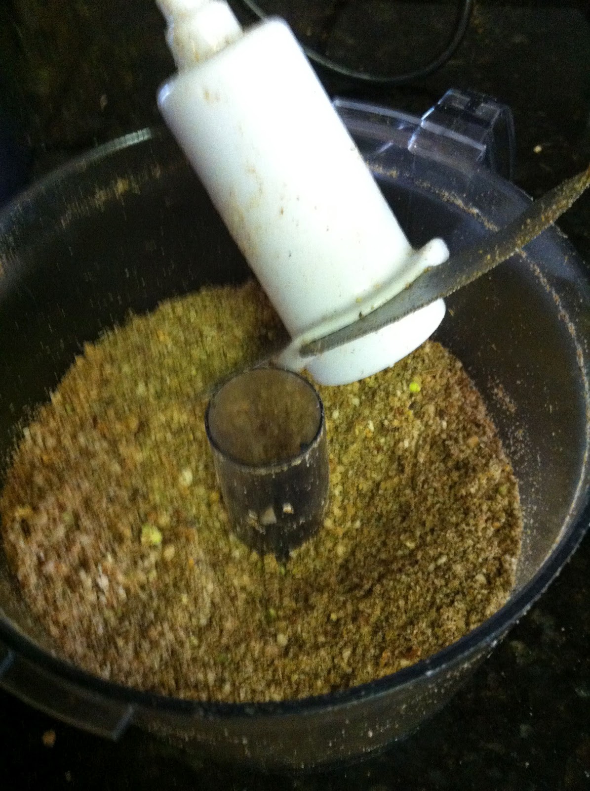 Place the nuts and seeds, along with the mint and salt, into a food processor and pulse into a coarse consistency.