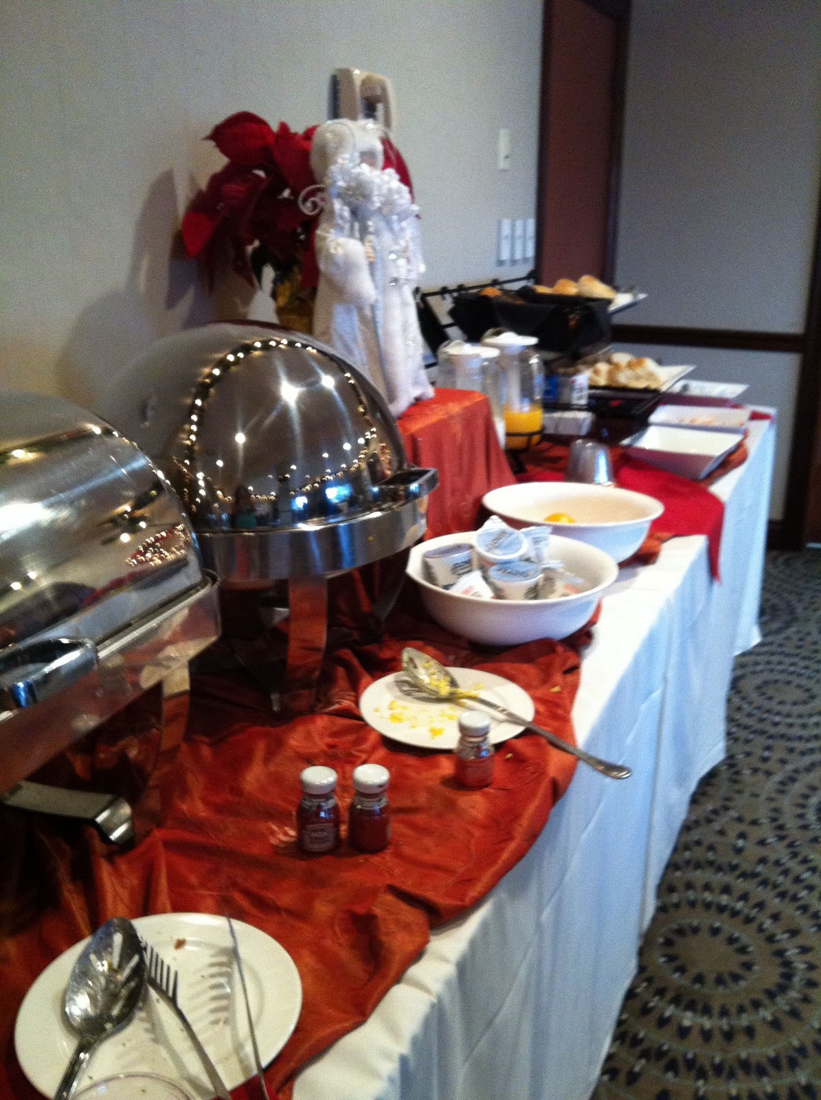 The next morning in the hotel, we grabbed some fruit, bacon, and sausage from the free buffet downstairs, before we both set off for our morning runs (his through the streets of Oakland, mine at the workout facility at the Waterfront).