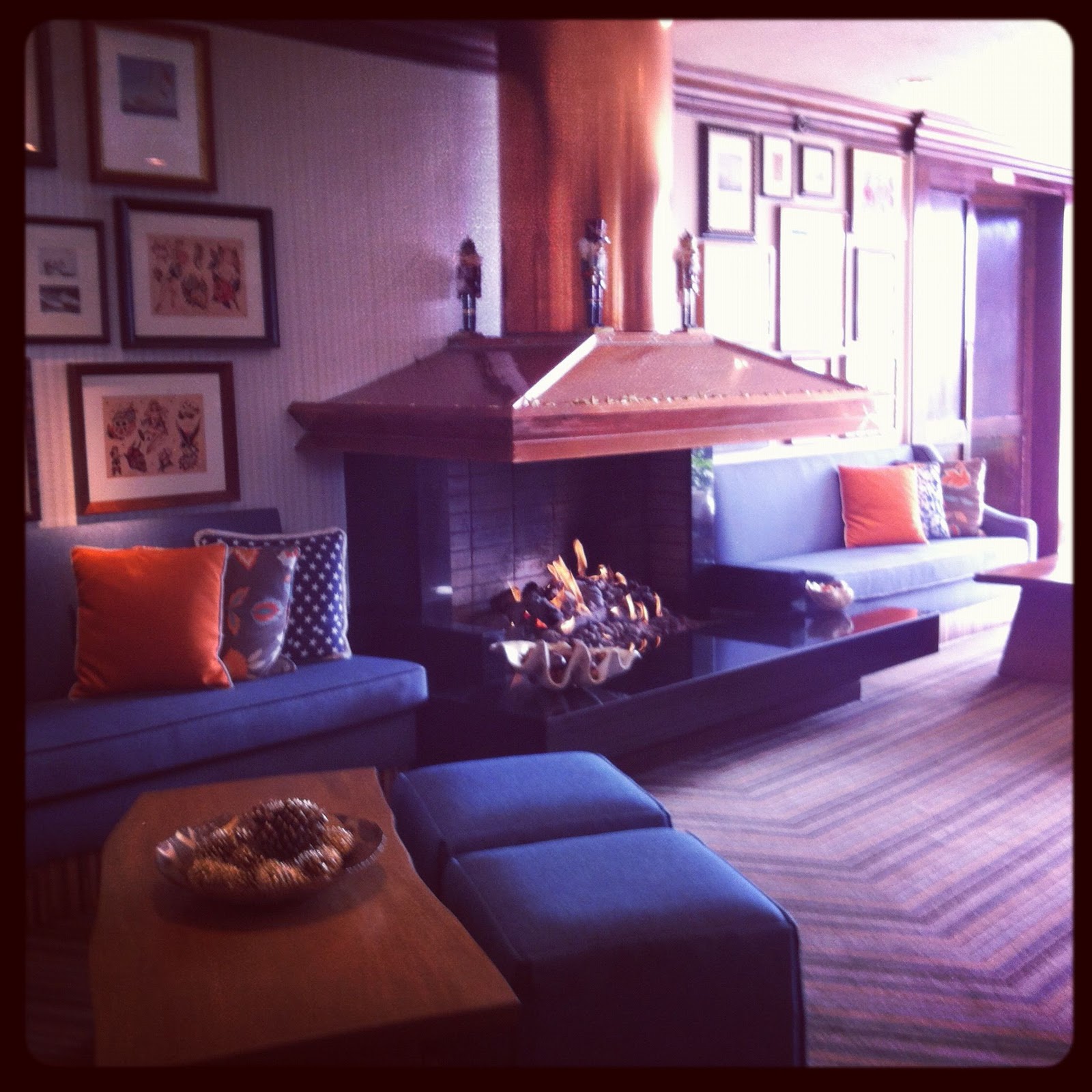 Here’s a picture of the fireplace in the lobby. The lobby itself was handsomely decorated and welcoming. Although the weather was unseasonably warm, the fireplace was alive with dancing flames.