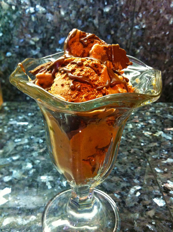 I modified this recipe from all recipes.com to make it Paleo friendly. Of course I used a totally Paleolithic blender, food processor, and ice cream maker to make the ice cream happen. Well, ya know. At least it’s all natural. 😉