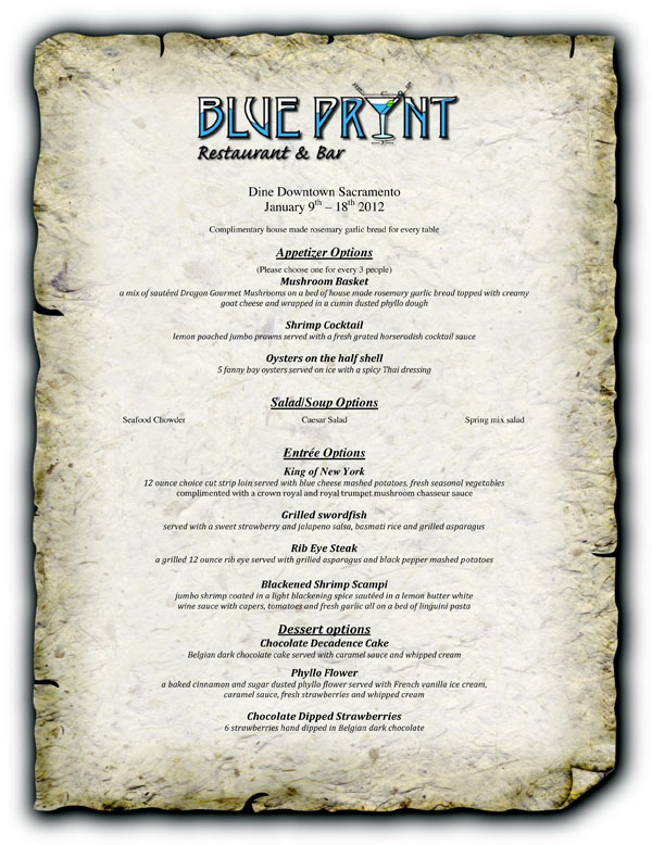 Sacramento’s Dine Downtown week kicks off on Monday, January 9th and runs through January 18th, 2012. For 10 days only, local chefs will create special three-course dinner menus for only $30 per person.