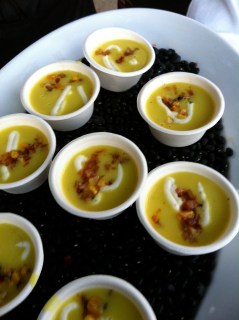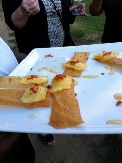 The evening began with a reception with appetizers by Whole Foods and Selland’s Market. Whole Foods made pear “hand-pies”, cider with sparkling water, and also sampled pistachios and yellow watermelon. Selland’s offered little cups of corn soup, cheese and honey served on cedar planks, and tiny pot pies with vegetable filling. Around the corner, Ten22 was serving fresh fried corn tortilla chips and mole sauce.