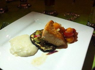 The second course was a Grilled King Salmon with Tomato Salsa and Creamy Polenta, prepared by Patrick Mulvaney of Mulvaney’s B & L. It was paired with a wine from Railbridge Cellars.