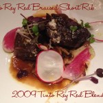 Then it was time to get serious. The third course presented to us was a Tinto Rey Red Braised Short Rib with Thyme Toasted Mushrooms and fresh Horseradish paired with the 2009 Tinto Rey Red Blend, California. The Tinto Rey is a red wine blend of Tempranillo, Syrah, Graciano, Tannat and Cabernet.