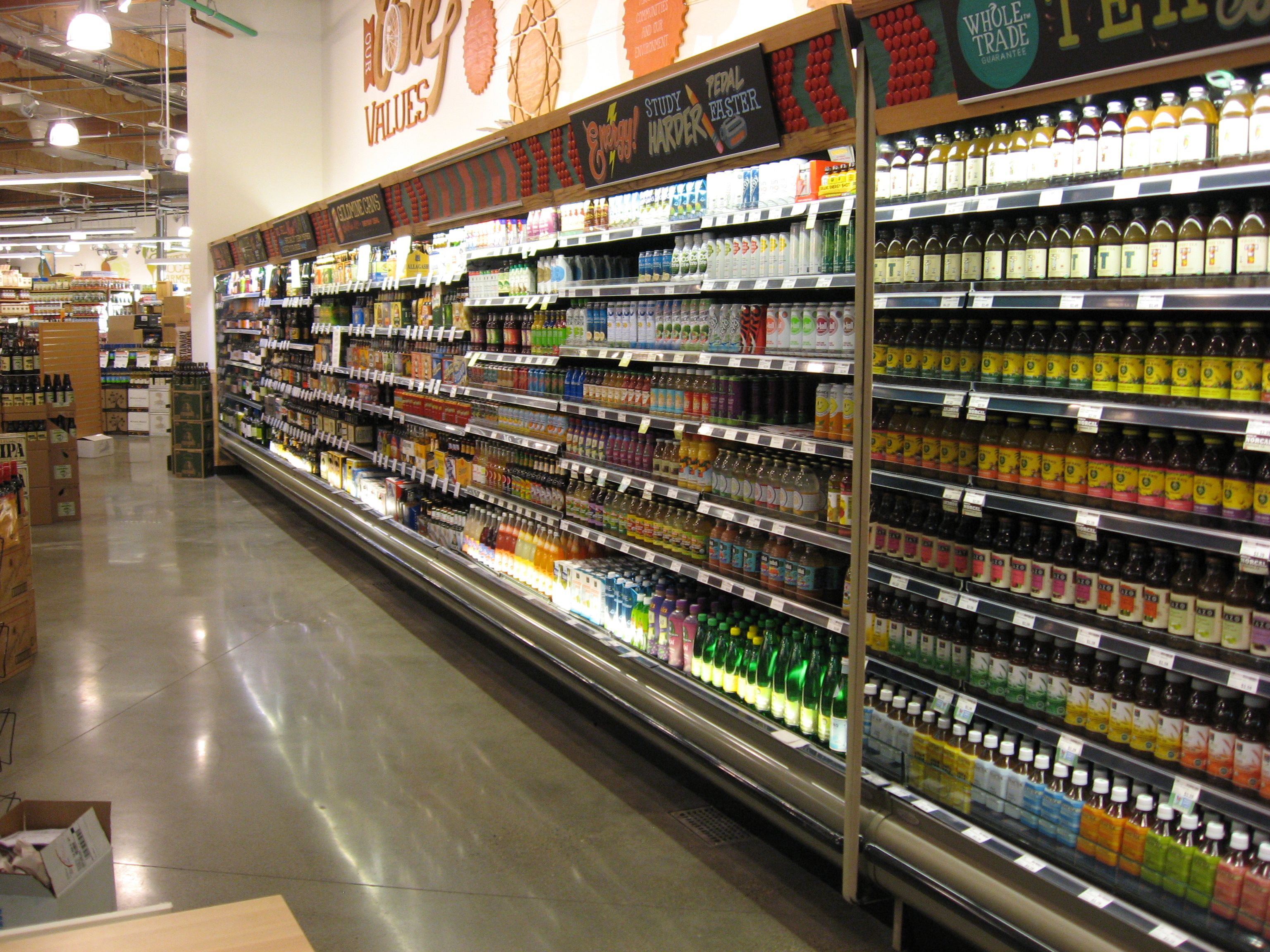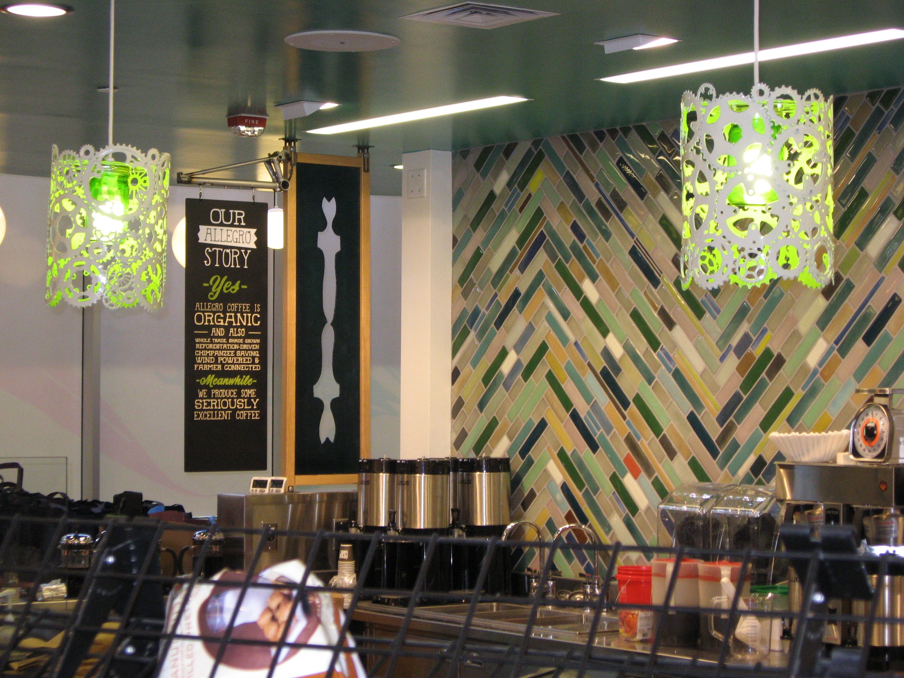 The 19,741-square-foot store, located in the former Borders location in the Davis Commons, features unique décor elements including reclaimed bicycle parts seen throughout the store; a beautiful mural by local artists Lacin/Christophel Mural & Design and indoor atrium cafe seating area. Green store design elements include reclaimed Douglas fir, used for various fixtures and wainscoting; glycol refrigeration system and LED lights, including track lighting and all case lights.