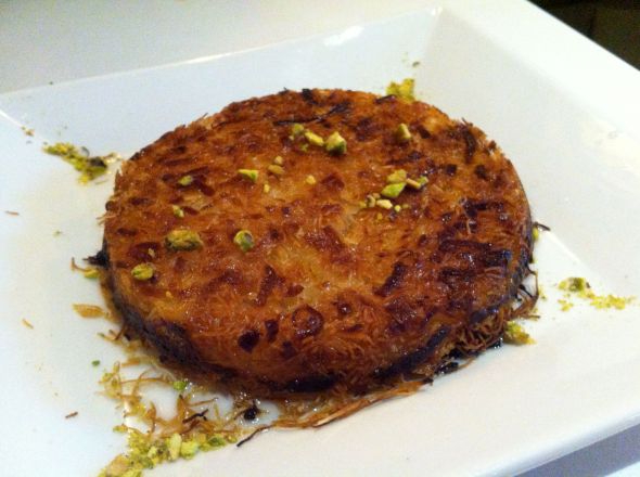 The owner brought out a second dessert for us like nothing I have ever seen or tried before! It is called kunefe (shredded phyllo dough baked with shredded coconut and sweet cheese). Not primal or even Paleo, but a nice treat nonetheless. I had a few bites and had Andy finish the rest. The texture and flavor was unlike anything I have ever tried before. Baklava might sound good and traditional, but trust me… try the kunefe. You can thank me later. I liked it so much I am going to work on a gluten-free, sugar free version. 🙂 Just wow.