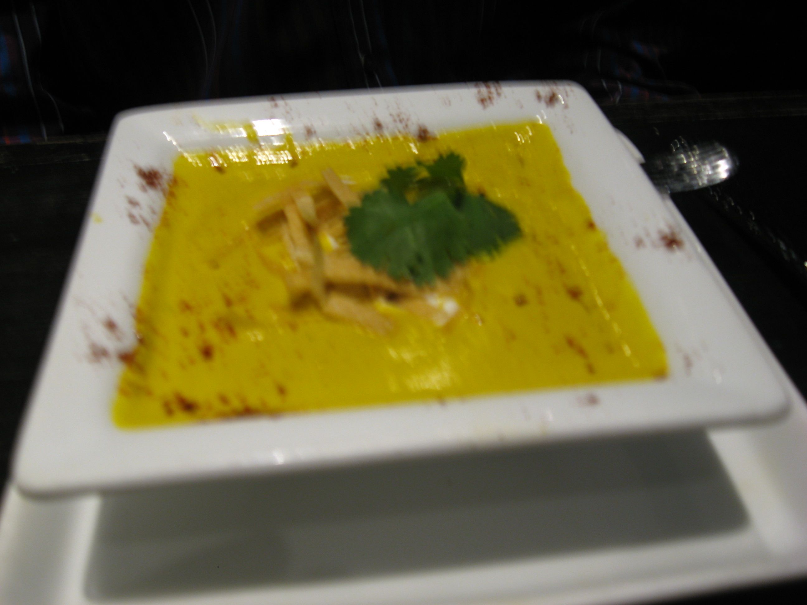 Then we were served an amuse bouche (which changes nightly). It was a spicy tomato broth with pasta.