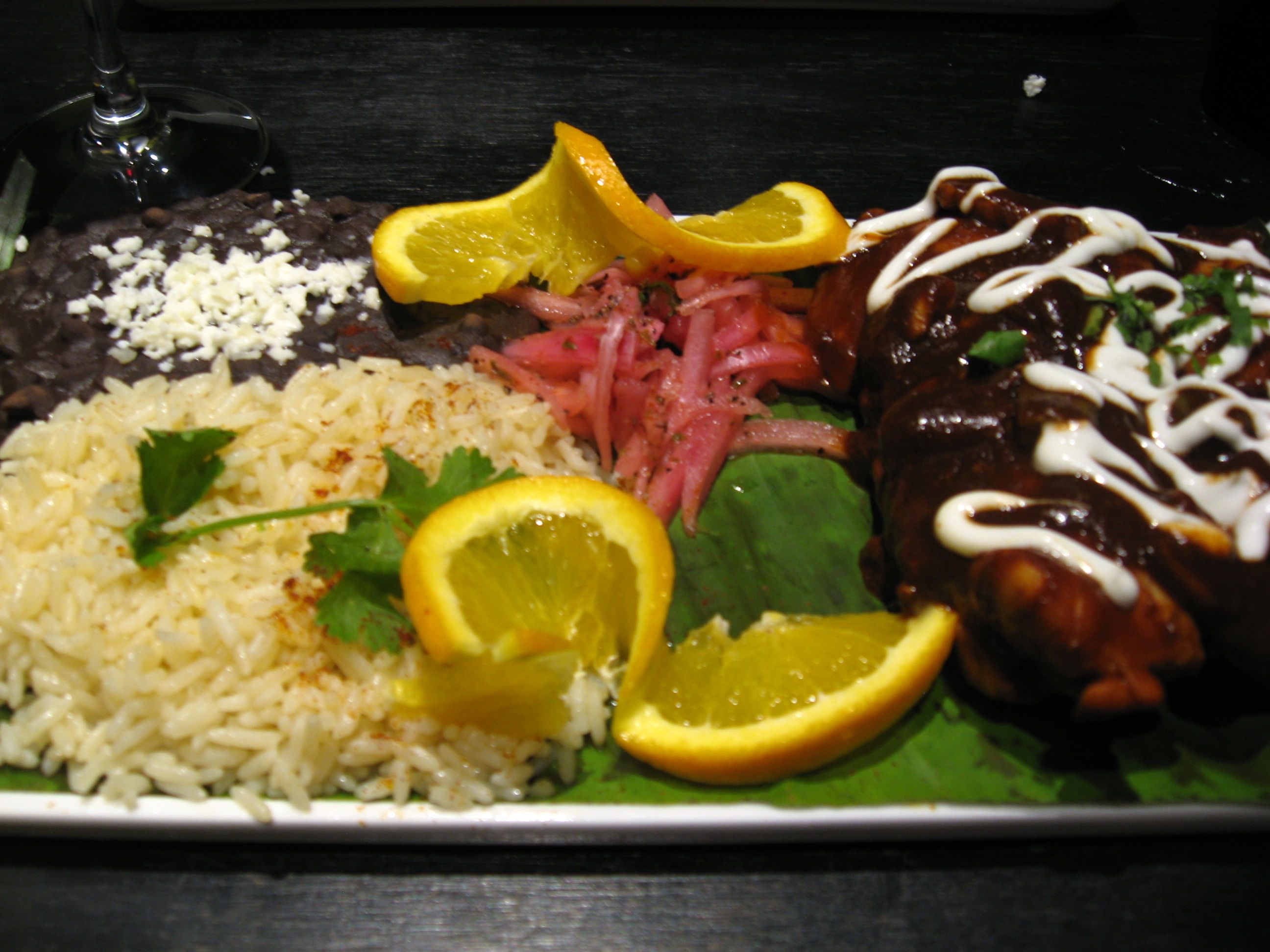 For my entrée I went with the Pollo en Adobo: Chicken and mushrooms with nopales in a Guajillo, Pasilla, Morita chile Adobo sauce, served with white rice and black beans. How I missed you rice and black beans. It was such a treat for me, I probably could have had more of them for dessert.
