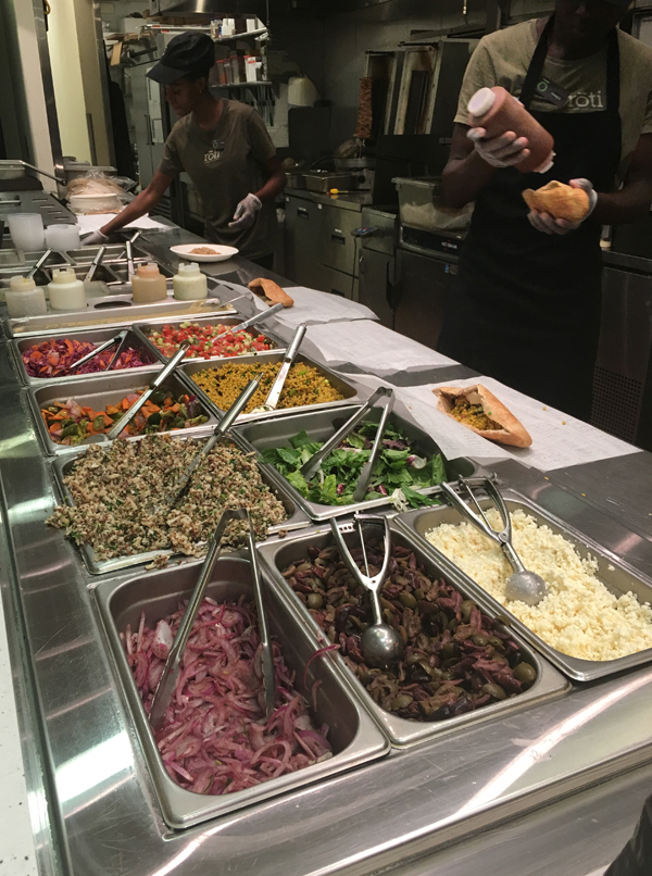 If you have never tried Roti Mediterranean Grill, it’s pretty much like a build your own burrito place, but instead with Mediterranean food. What drew me to Roti is that they have a gluten-free/gluten-friendly menu with gluten-free pita bread. Probably enough said there, too. I am sure all my gluten-free readers are now just as intrigued as I was! 🙂