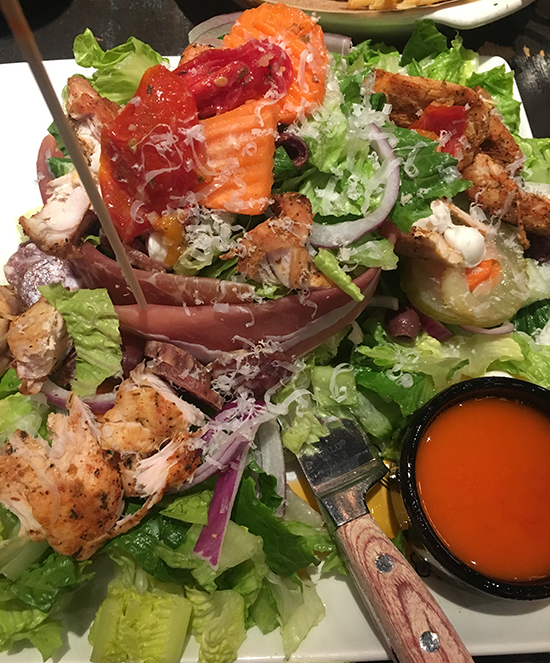 I loved the chicken kabob salad because it was filling and healthy, which is how I like to eat even when I am out of town. I could not tell a difference between this pita bread and regular pita bread, and the side of hummus was enormous, and would be used on other food throughout the weekend thanks to the refrigerator in my room. If you’re curious about the wine, I packed three bottles with me to save money on beverages during my trip. Tonight’s wine was a Chardonnay which is a lovely pairing with grilled chicken.