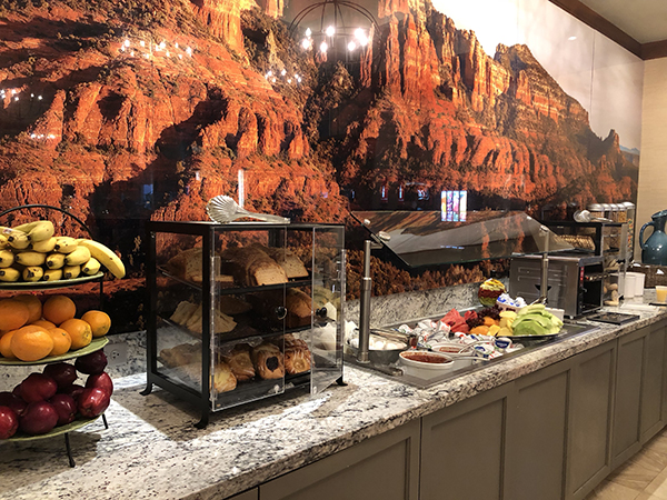 When I got back to the hotel, I finished my workout in the StayFit™ Fitness Center. It is a well-equipped gym with several treadmills, ellipticals, weights, a sauna, locker rooms, an indoor lap pool, and an outdoor sundeck. The gym’s set up reminded me of a greenhouse, as detailed in the picture (below). I ran three more miles and did 20 minutes elliptical thanks to the air-conditioning!! 🙂
