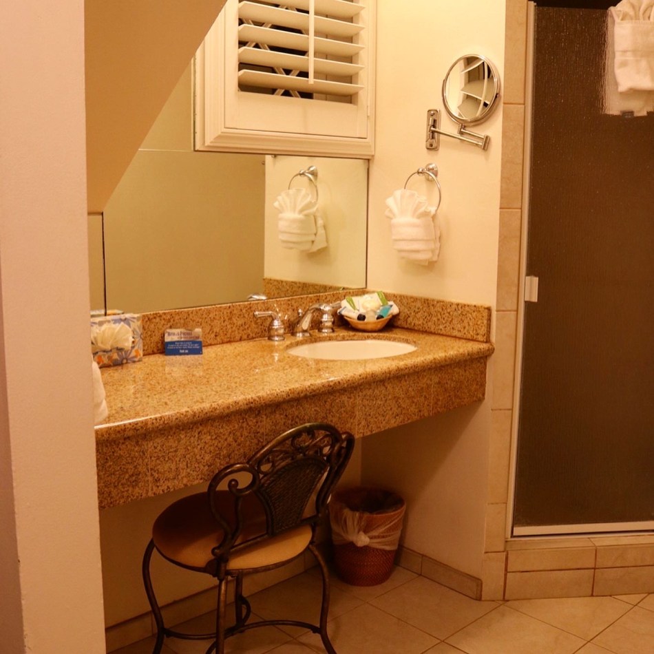 All 275 guestrooms have been completely renovated with a design specifically to mimic the colors and feel of a tasting room. They have warm greys and Earth tones that appear naturally in wine caves, as well as burgundy/grape hues that take on the grape color so familiar in Napa. There is a sliding wooden barn doors with exposed hardware that provides bathroom privacy while creating a rustic wine country feel to the tranquil space.