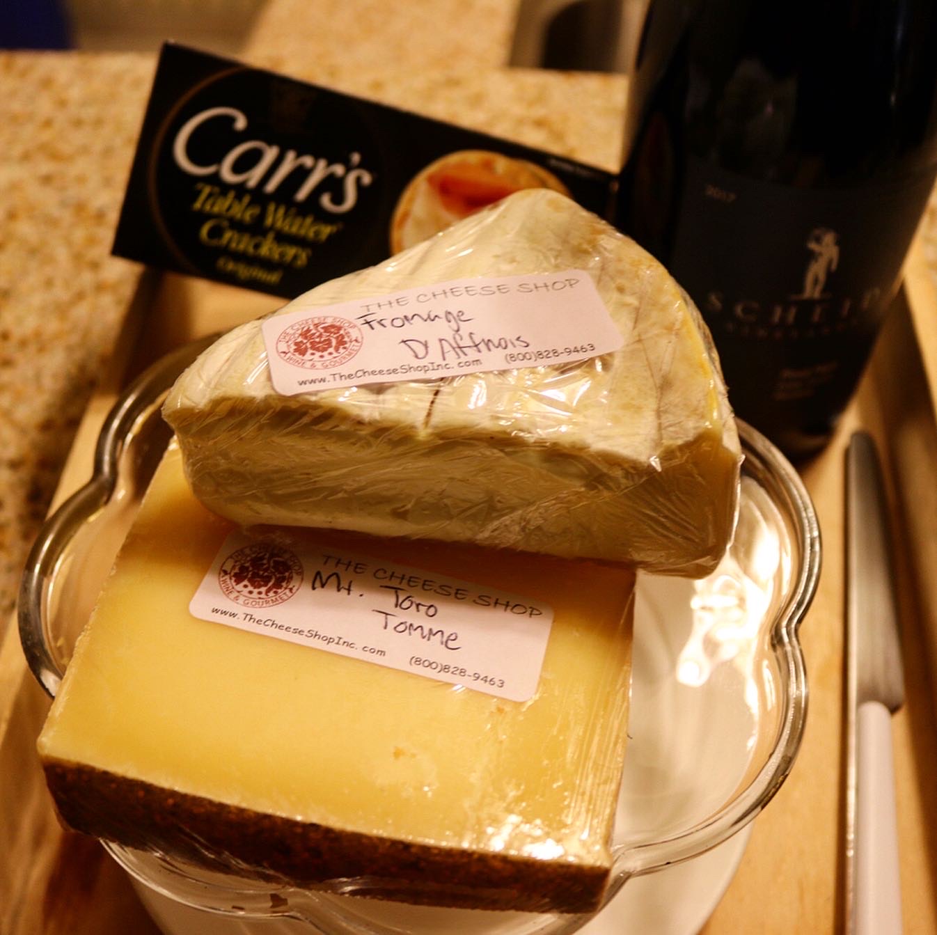 We enjoyed this bottle of 2017 Scheid Vineyards Estate Grown Pinot Noir and two selections of cheese: