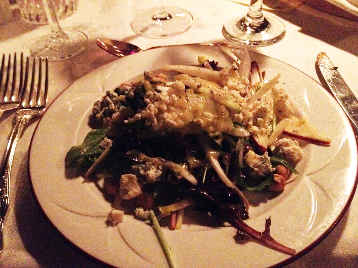 Andy ordered the Roasted Beet Salad with Frisee, Tarragon, Hazelnut, and Grapefruit Vinaigrette: