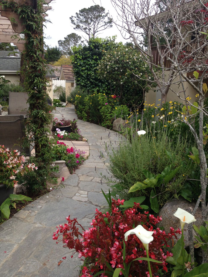 It happened to be my birthday weekend, which made the trip even more awesome. And again, so happy to have Andy in my life and to treat him to fun couple of days in return for treating me to great wine and occasional dinners out, as well as most of dinners made at his home on the weekend. Below is the front of the part of the hotel in which we stayed. I have never seen such great landscaping in my life as I saw in Carmel. All the flowers and plants just seem to love the cool (but not cold) climate.
