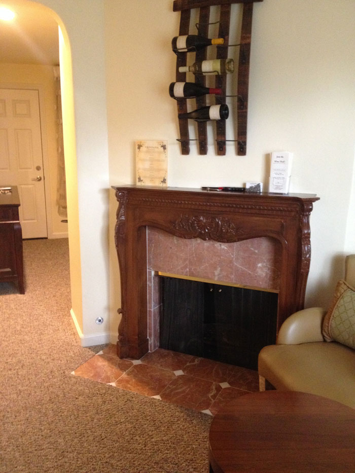 Along with the rename, they finished the bathrooms with stone and Spanish marble, gave each room brand new furniture (including one of the most comfortable beds on which I have ever slept), linens, duvets and down pillows. They landscaped the grounds, drained a foul-smelling pond and put in a gorgeous fire pit in its place, and renovated the lobby with fixtures that compliment the hotel’s history and also reflect the family’s love of wine.