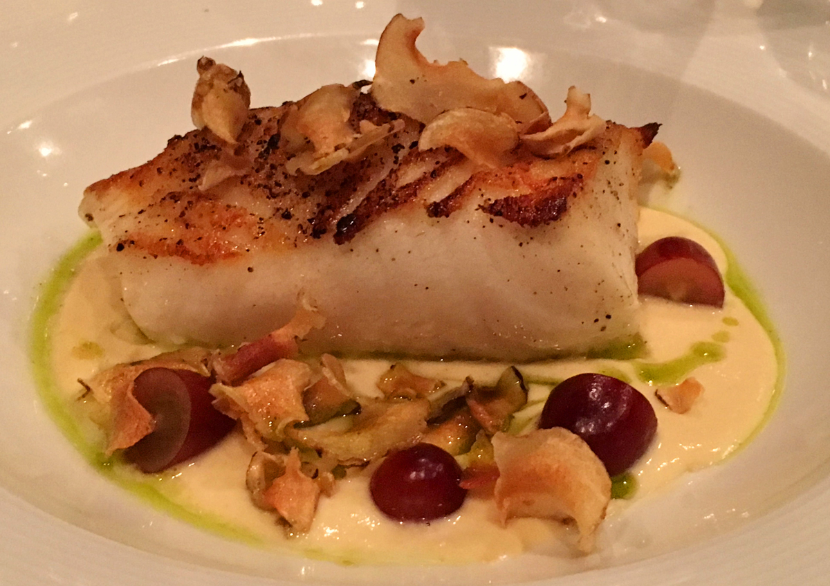It was a line-caught Chilean Sea Bass with grapes and crispy sunchokes. It was one of the best fish dishes I have ever had. There were several layers of flavor and textures going on within the plate: flakey, creamy, crispy, savory, sweet, umami. It was everything I want in a bite of food. Comforting, but not too heavy. And so perfect I had to show you another picture: