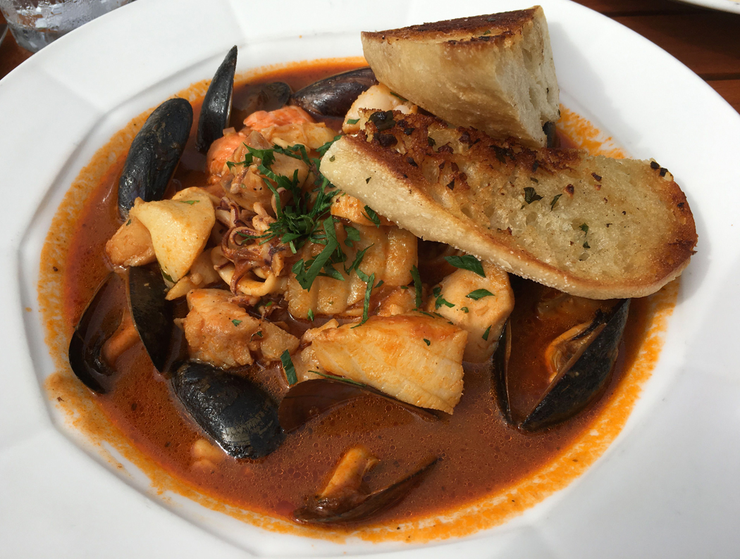 I order Cobb Salad a lot in restaurants because it has the trifecta of love: avocado, bacon and blue cheese! 🙂 I ordered the dressing on the side (which was actually a very good Lemon Dijon Vinaigrette). It was the perfect low carb lunch after a long workout! The Cioppino was fragrant of mussels, clams, shrimp and cod with a spicy tomato broth. Andy jumped ship on the gluten free boat (momentarily) to enjoy the crusty garlic bread as a mop, catching every drop of the soup. What a satisfying lunch and sure to keep us full until dinner.
