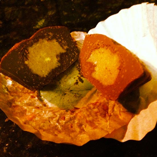 6. When filling is set, cover the rest of each candy with more melted chocolate. Repeat for each candy.