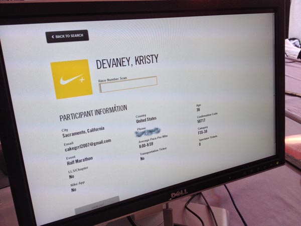 I was unable to pick up my bib prior to the Expo, so I attended on Saturday. Props to the staff at the Expo for being so efficient. I walked right up to an open computer kiosk and was helped immediately. I also received my pace bracelet so I knew where to line up for the start of the race the next day.